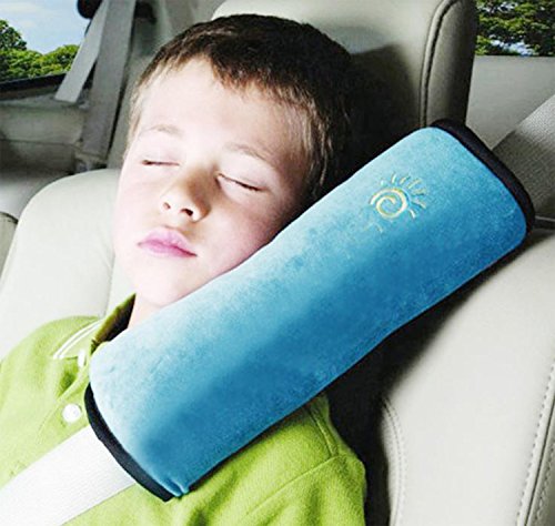 - 車が動き出すとついつい眠ってしまう子供たちの頭と首を快適にサポートするシートベルトに着用する枕です。