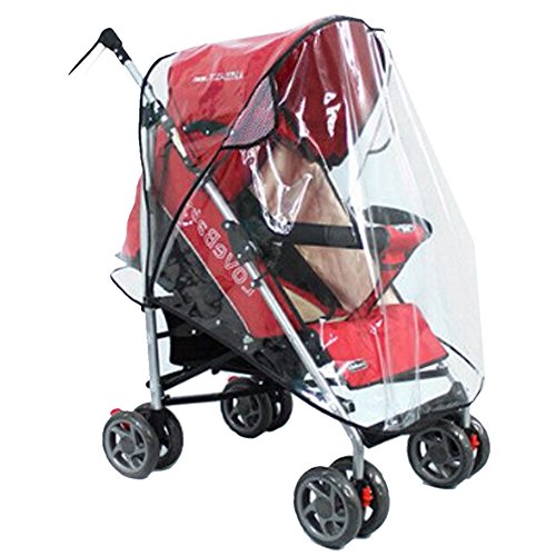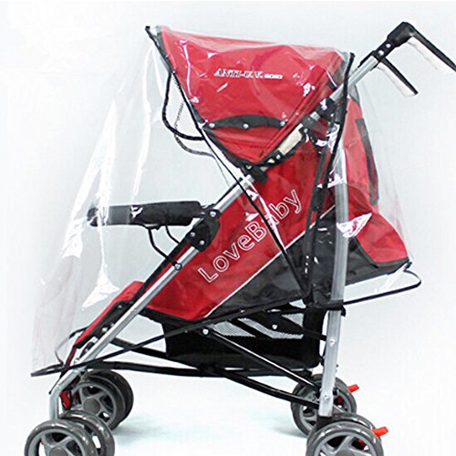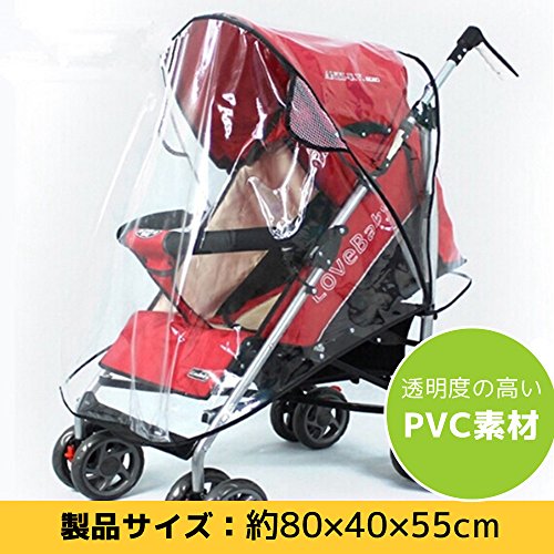 - ベビーカーにすっぽり被せる、透明クリアタイプの防雨カバーです。さまざまなタイプのバギーにお使いいただけます。 サイズは約80×40×55cm、素材は撥水効果の高いPVC塩化ビニール製でしっかりと雨を防ぎます。