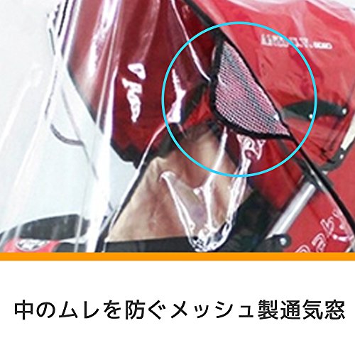 ベビーカー全体をすっぽりとカバーできるレインカバーです。全面透明のビニール素材ですのでどの角度からもベビーカーの中のお子様を確認できます。中のムレを防ぐメッシュの通気窓付。雨だけでなく、防寒対策、ほこりよけ、虫よけなどとしてさまざまな用途にお使いいただけます。