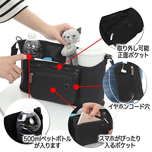 - 日常必需品がこれ1つに収納!ベビーカー用バッグ ペットボトル、タオル、携帯や小物など収納できベビーカーやショッピングカートに簡単に取付けられます 正面ポケットは取り外し可能でストラップ付き!ベルトポーチとして使えます