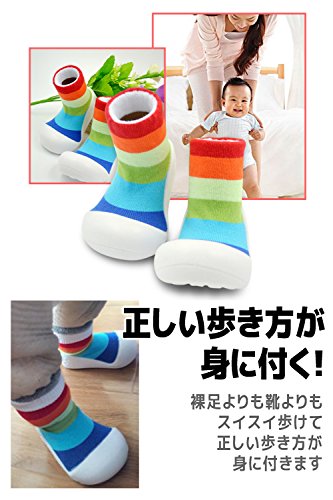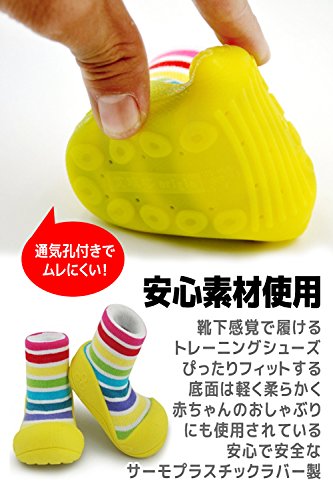 よちよち歩きの赤ちゃんを応援!赤ちゃんのためのトレーニングシューズ。生体力学に基づき開発された赤ちゃんのよちよち歩きをサポートします。つま先やかかとにきちんと力が入るので足裏をしっかり守り滑らず安心!底面には通気孔がありムレにくく洗濯ネットに入れて丸洗いOK!