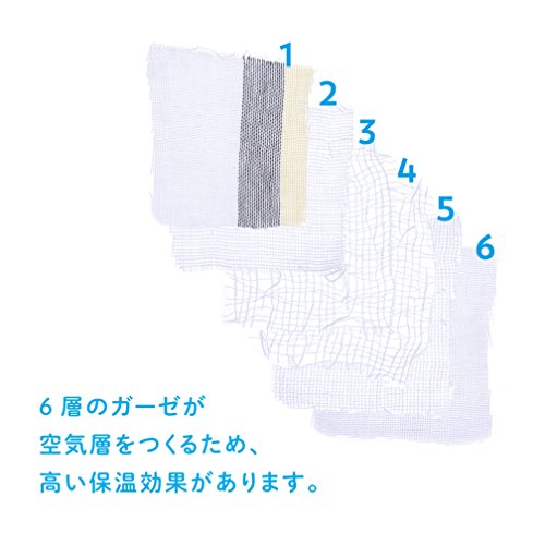 - 【保温性】6層のガーゼが空気層をつくるため、高い保温効果があります。