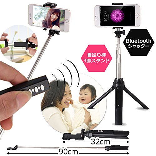 - お子さまのシャッターチャンスを逃さないための便利なアイテム!3脚にもなる便利な自撮り棒。Bluetoothシャッターでスマホに繋げればワイヤレスシャッターにもなるので、自撮り、お子さまと一緒に撮るときに役立ちます。三脚は滑り止め加工でしっかり安定。
