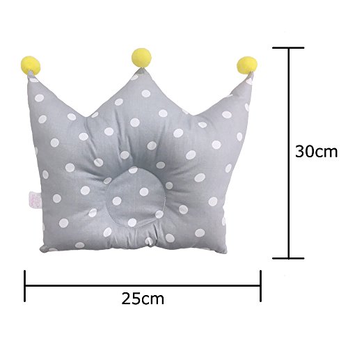 ベビー まくら 王冠 新生児 赤ちゃん 枕 ドーナツ 絶壁防止 頭の形 向き癖 出産 祝い ギフト プレゼント Baby Pillow (30×25, グレー/水玉)