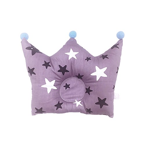ベビー まくら 王冠 新生児 赤ちゃん 枕 ドーナツ 絶壁防止 頭の形 向き癖 出産 祝い ギフト プレゼント Baby Pillow (30×25, 紫/星柄)