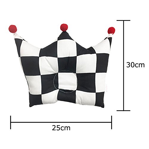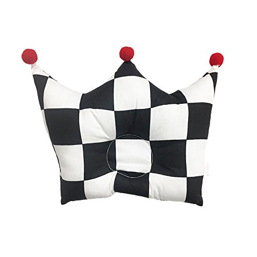 ベビー まくら 王冠 新生児 赤ちゃん 枕 ドーナツ 絶壁防止 頭の形 向き癖 出産 祝い ギフト プレゼント Baby Pillow (30×25, 白黒/市松)