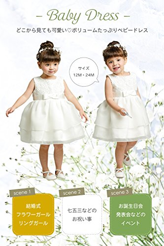 ◎結婚式、発表会、七五三参り、クリスマスパーティー、バースデイパーティーなどのかしこまったおでかけからセレモニー、おめかしの際に活躍するベビードレス。◎白ベビードレス、可愛いヘアアクセサリーをセット! ◎白オーガンジー&レース素材で上品なドレスです。基調のドレスは光沢のあるサテン調。セレモニーなどの改まった席にも着用できます。◎キュートな袖のないノースリーブドレス!内に長袖のインナーを着用すると冬でも可愛く使用できます。季節を問わず色んな場面、用途によって長く広く活用できます。 ◎ドレスの中、肌にあたる部分は綿100パーセントで安心して着用していただけます。 ◎スカート中にはチュールを使用。可愛くドレススカートがひろがります(チュールは直接肌にあたりません。綿100パーセントのインナースカートがお子さんのデリケートな肌を守ります◎お手入れ方法:手洗いまたはドライクリーニング(手洗いの際はしわになりやりやすい為こすったり、しぼったりはしないでください)※漂白剤の使用はおやめください