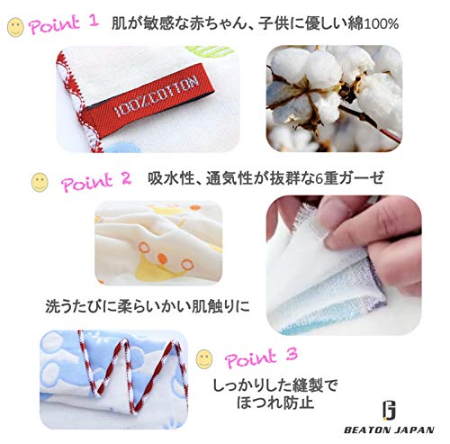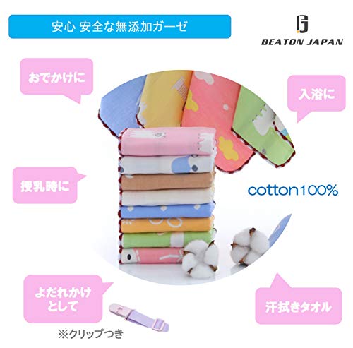 - 赤ちゃん、子供の肌に優しい綿100%の天然素材ガーゼタオルです。入浴、食事、汗拭き、授乳など色々なシーンでお使いいただけます。