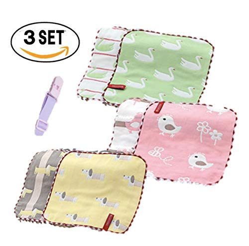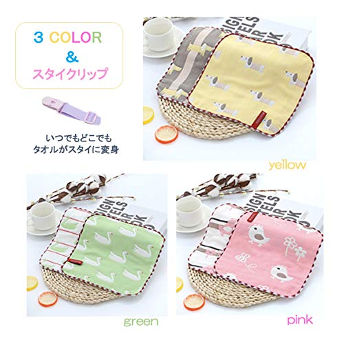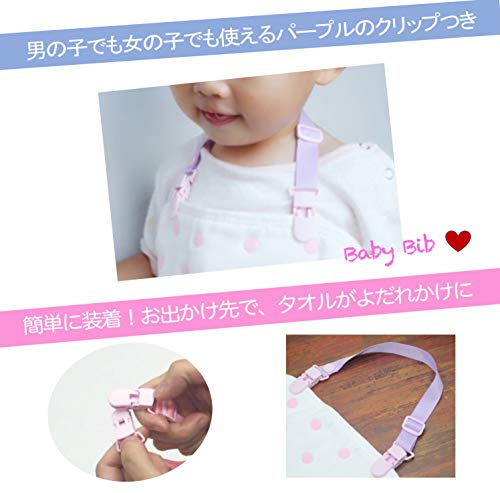 - ビブクリップつきなので、タオルがスタイとして活用可能。色や柄は可愛いものを3枚チョイスしました。洗い替えもでき、その日の気分に合わせてご使用ください。