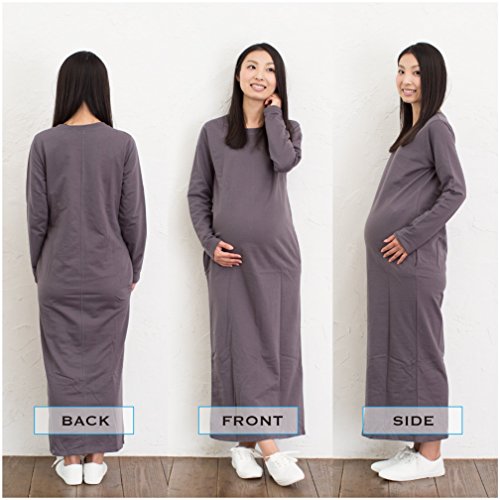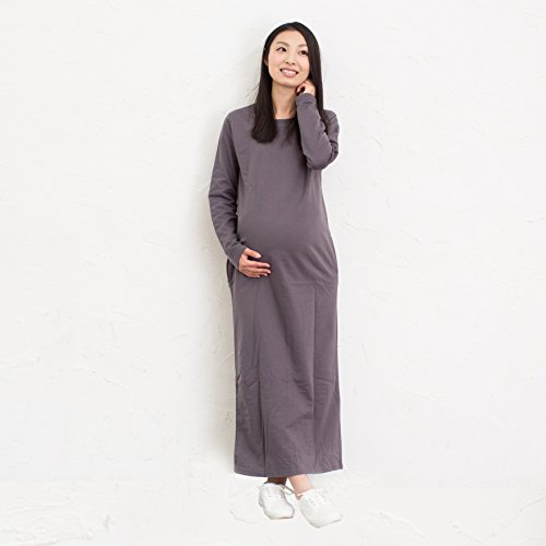 BEATON JAPAN マタニティ マキシ丈 ワンピース 長袖 春秋 ルームウェアとしても着られる! (L, グレー)
