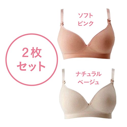 妊娠中も自分らしいオシャレを貫きたい方のためのシンプルマタニティーアンダーウェアコレクション。ノンワイヤーでも2重ゴム構造でずれにくく、心地よくやさしいフィット感で快適です。カップが半分外せる構造で、授乳もしやすい! ソフトピンク、ナチラルベージュの2枚組。セットで使用いただけるマタニティーショーツもあります。