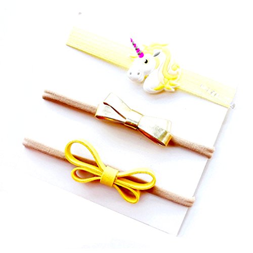 BEE&BLUE ベビー ヘアバンド 新生児 赤ちゃん 出産祝い 誕生日 100日記念 こどもの日 記念撮影 3枚セット プレゼント (イエロー)