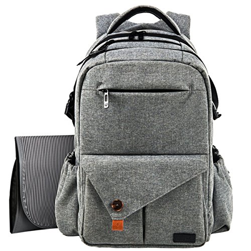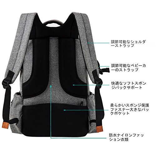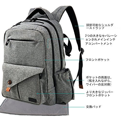 BENIFICER 大容量の赤ちゃんのおむつのバッグ灰色のおむつのバッグミイラのバックパックベビーカーのストラップのためのパッドを変更する防水素材