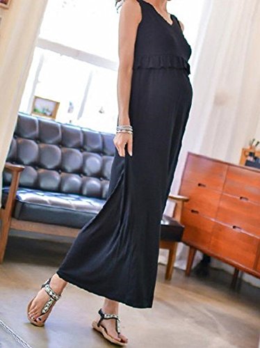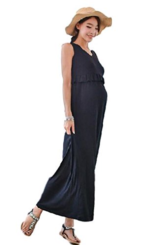 - BEREAM フリル が かわいい マタニティ ワンピース ノースリーブ タンクトップ ロング丈 授乳口付き