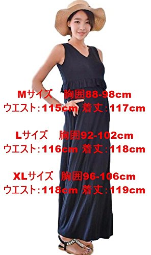 BEREAM フリル が かわいい マタニティ ワンピース 授乳 ノースリーブ タンクトップ ロング丈 授乳口付き ( L サイズ , ネイビー )