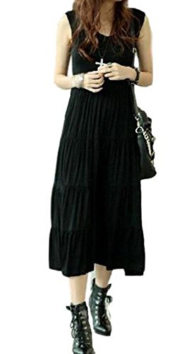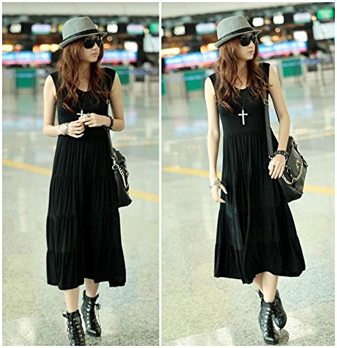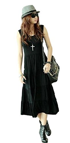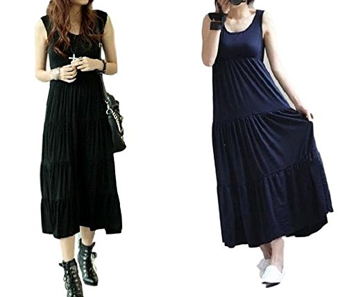 BEREAM (ビリーム) タンクトップ ワンピース レディース ジャージ 夏 ふんわり マキシ マキシ丈 ( ブラック )