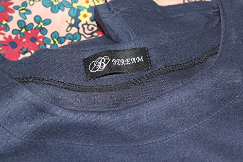 BEREAM (ビリーム) マタニティ ワンピース チュニック レディース Aライン 切り返し パッチワーク (M, ネイビー)