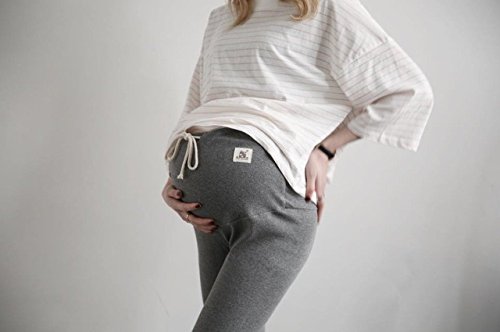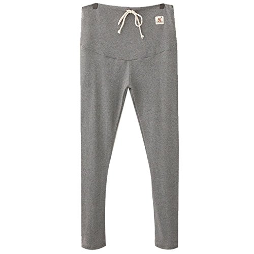 BEREAM マタニティ パンツ レギンス 綿 コットン 産前産後 春秋 ウエスト調節 ひも付き ダークグレー