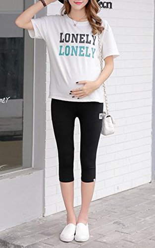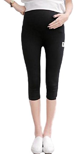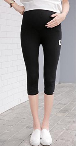 BEREAM マタニティ レギンス スパッツ パンツ 七分丈 7分丈 ストレッチ ウエスト ゴム 調整 ( XL , ブラック )