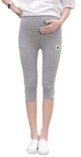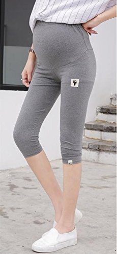 BEREAM マタニティ レギンス スパッツ パンツ 七分丈 7分丈 ストレッチ ウエスト ゴム 調整 (L, グレー)