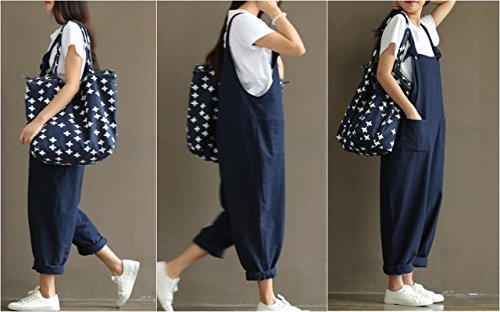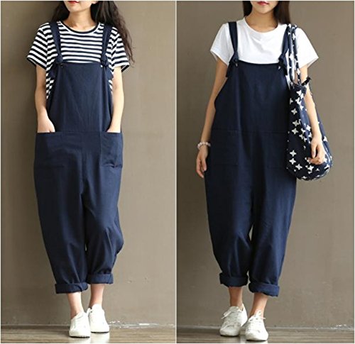 BEREAM オーバーオール レディース パンツ オールインワン ロールアップ 大きいサイズ ネイビー XXXL