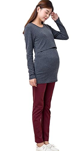 BEREAM 授乳 服 トップス 長袖 シャツ ロング 授乳口付き インナー カットソー ( M , ダークグレー )