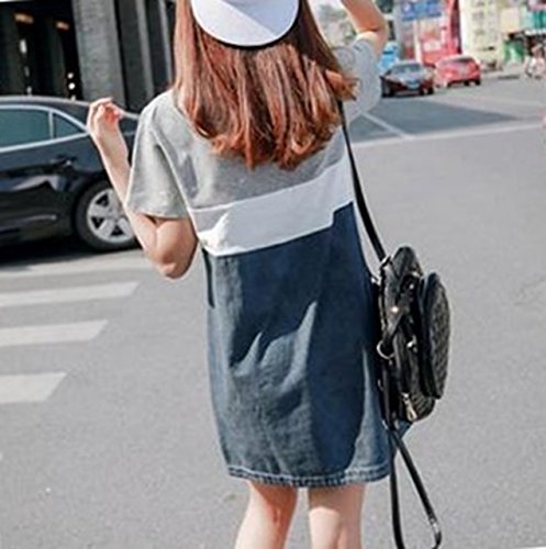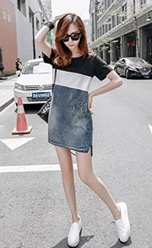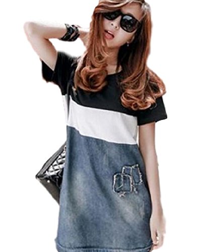 BEREAM 授乳服 ボーダー マタニティ ワンピース デニム 夏 春 春夏 授乳 半袖 授乳口 ファスナー 付き (M, ブラック)