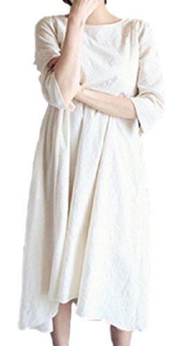 BEREAM(ビリーム) マタニティ ワンピース レディース vネック 七分袖 Aライン 綿麻 授乳口付き ホワイト L