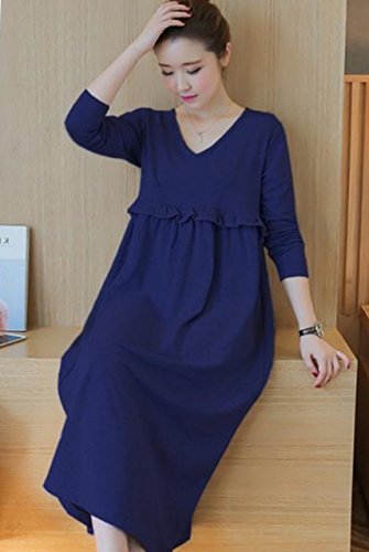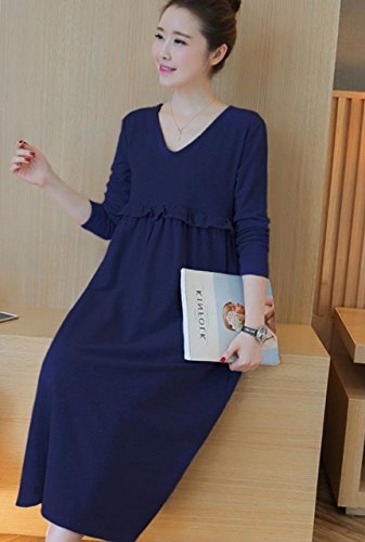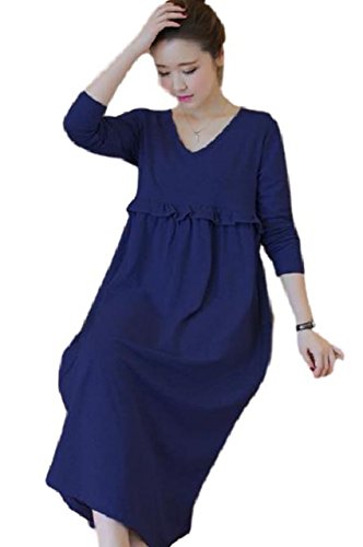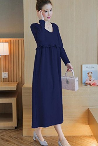 BEREAM フリル が かわいい マタニティ ワンピース レディース ゆったり 春 秋 ロング 丈 ファスナー 長袖 授乳口 付き ネイビー M