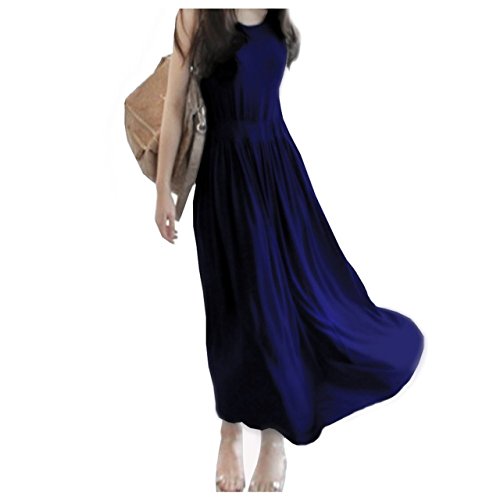 BEREAM マタニティ マキシ ワンピース レディース vネック ロング丈 シンプル ゆったり 体型カバー ビーチ 旅行 海水浴 部屋着 (ネイビー)