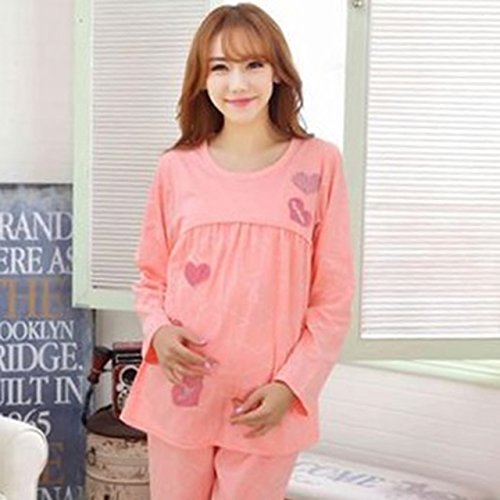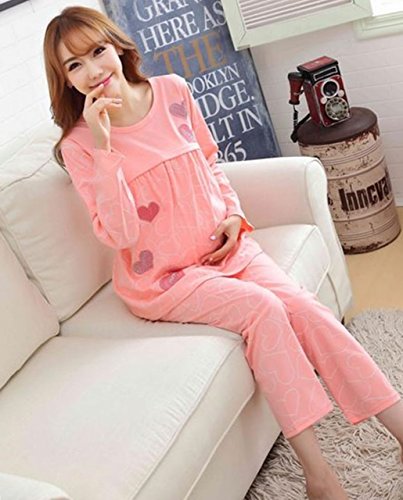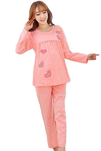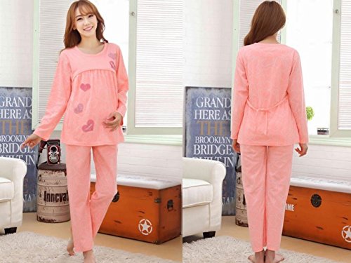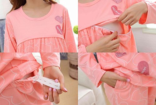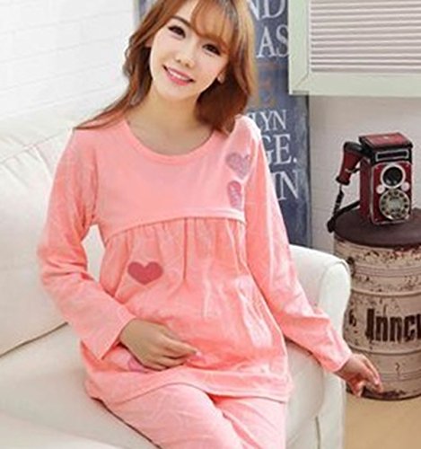 BEREAM マタニティ パジャマ 長袖 前開き 授乳 入院 春 秋 綿 おしゃれ ハート 柄 かわいい ( XL )