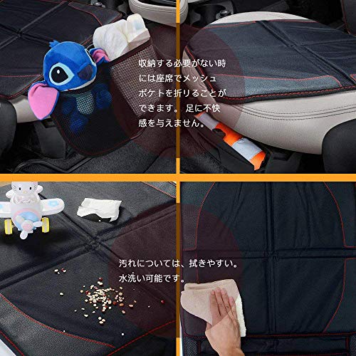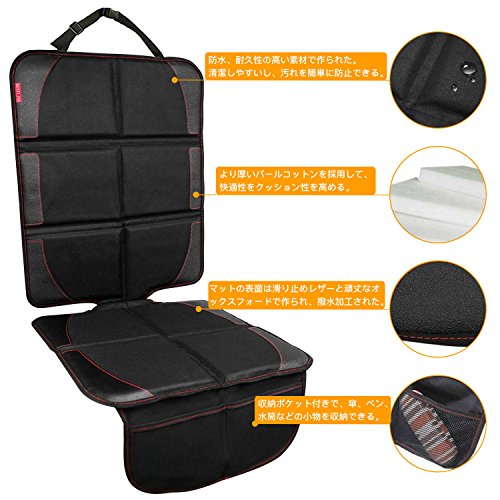 チャイルドシートマット シートプロテクター 滑り止め 車保護シートカバー 多機能メッシュポケット付き (ブラック)