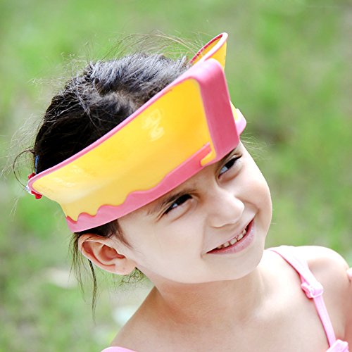 シャンプーハット シャワーキャップ シャワー用防水帽 ベビー キッズ 子供用 耳のシールド付き サイズ調節可能 (イェロー)