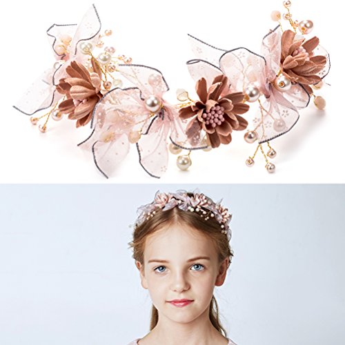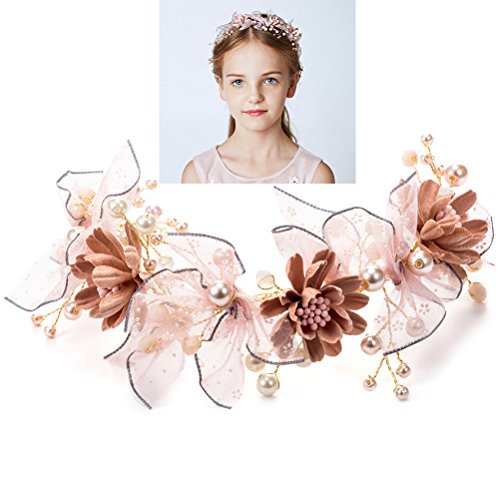 - 花柄女の子クラウンキッズ花柄パール花輪ヘアアクセサリーの花輪のヘッドバンド祭ウェディングパーティー