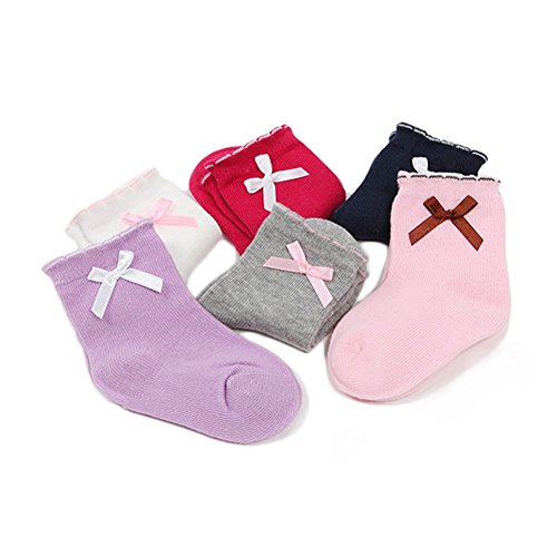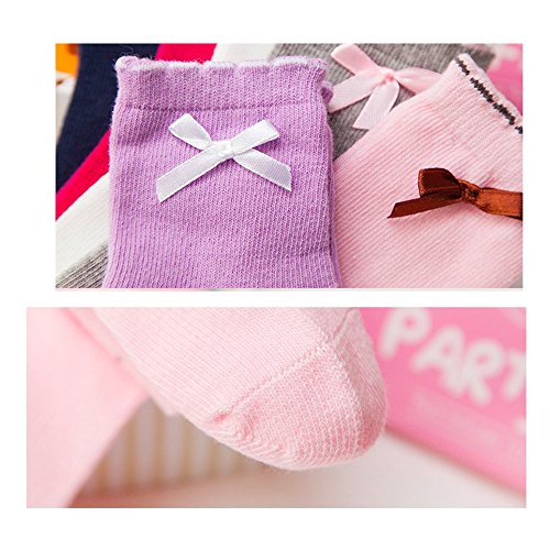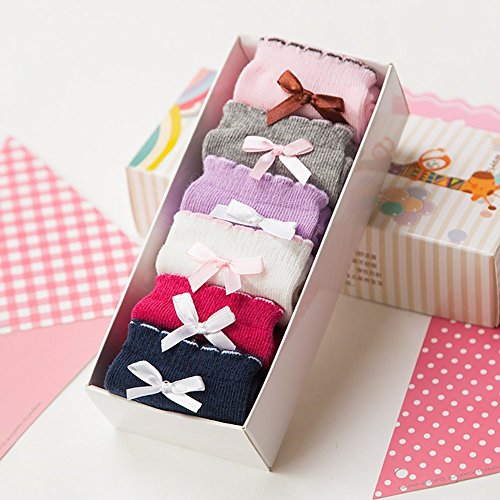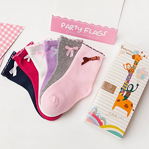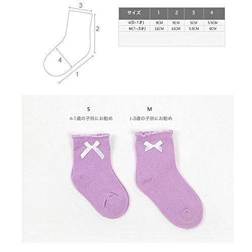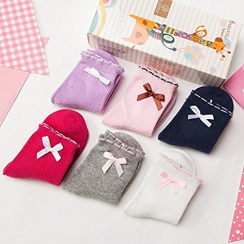 BIANHUAN キッズ 子供 靴下 ソックス お姫様 6足 セット 春 秋 綿 リボン 女の子 くつした 無地 通気 シンプル 柔らかい (M:1-3歳の子供にお勧め)
