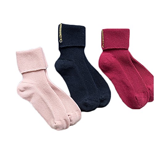 BIANHUAN 靴下 ソックス 女の子 キッズ 3足セット 秋冬 ベビー くつ下 子ども 通学 かわいい カラバリ おしゃれ (L(18-20cm))