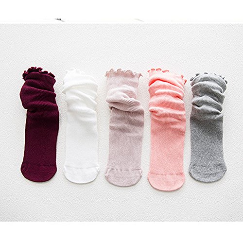 BIANHUAN くしゅくしゅソックス 靴下 子供 女の子 キッズ ベビー かわいい コットン ソックス 柔らかい 春夏 5足セット (A)