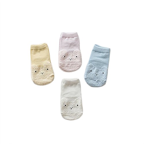 BIANHUAN ソックス キッズ 赤ちゃん 靴下 4足 セット 新生児 秋冬 暖かい 滑り止め付き ベビーソックス 赤ちゃんソックス ベビー靴下 くつした 男の子 女の子 柔らかい 誕生日ギフト (S)