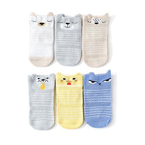BIANHUAN ソックス 靴下 ベビー 幼児用 キッズ 子供 かわいい 女の子 通気性抜群 コットン 柔らかい 夏 6足セット (男の子, S:(0-6ヶ月))