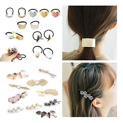 BIANHUAN ヘアゴム ヘアピン ヘアクリップ 16点(8ヘアゴム+ 8点ヘアピン) ヘアポニー メタル シンプル ゴールド シルバー 大人 かわいい きらきら ラインストーン かわいい おしゃれ ヘアアクセサリー 髪留め ゴム 人気