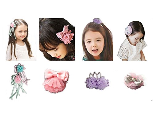 BIANHUAN ヘアピン こども お花 リボン フラワー 5点セット ヘアアクセサリー キッズ 子供 髪飾り 女の子 可愛い 髪留め かわいい 誕生日 結婚式 お宮参り (B)
