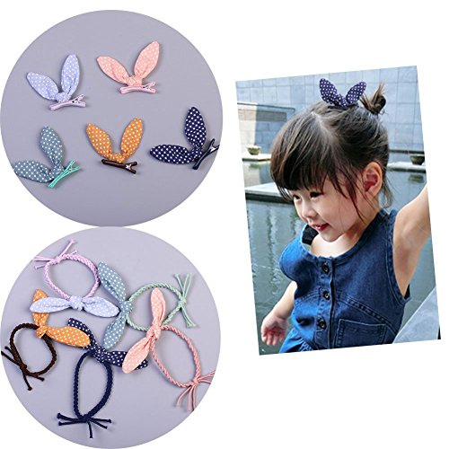 BIANHUAN ヘアピン ヘアゴム こども ヘアクリップ ベビー かわいい 10点(5ヘアゴム+ 5点ヘアピン) ヘアークリップ ヘアアクセサリー 子供 髪ゴム ベビー かみかざり 髪飾り リボン 髪留め キッズ 子供