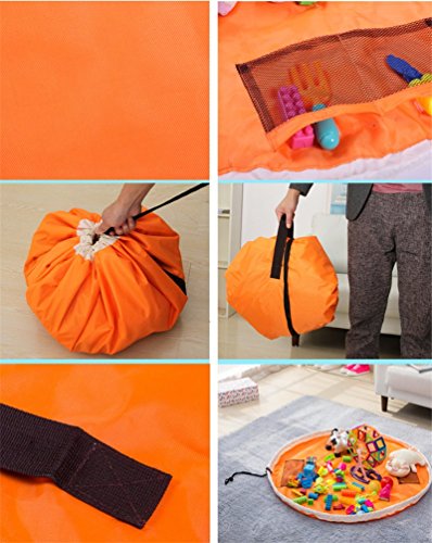 ストレージバッグ プレイマット 収納袋 収納バッグ 子供 お片づけ おもちゃ 直径150cm 超大 防水シート (オレンジ)
