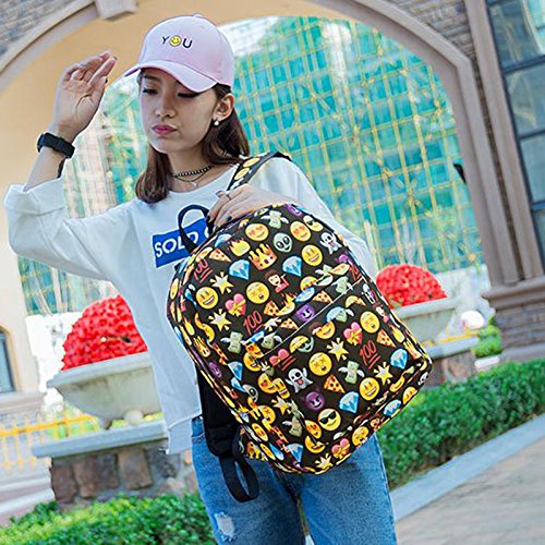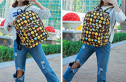 欧米大人気!ファッションなる絵文字バックパック、実用とともに可愛い!女子達はもっと萌えになります!男同士も心配しらず、ブラックのバグパック+絵文字はさらにカッコイイ! 良質:厚くオックスフォードの生地と通気性メッシュで作られたバックパックは抗破断、実用的でウェアラブル、耐久性を持って大重量に耐えることができます。 面白い顔文字の設計は人混みの中にもユニーク! 軽量で大容量、活気的な外形は子供やティーンなどにプレゼントとして完璧! 優れたデザインと機能が有し、容易にフェードはしません!調節可能なパッド入りショルダーストラップは、背中の負担を軽減し、リラックスと快適さを感じられます!