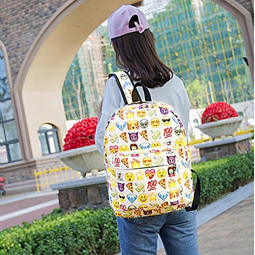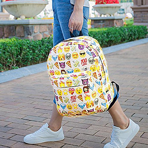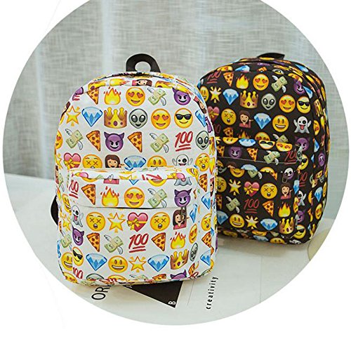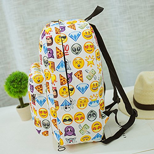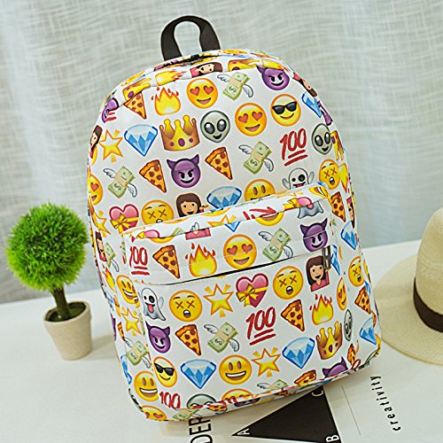 リュックサック バックパック アウトドア 絵文字 大容量 通学 遠足 旅行 お出掛け カジュアル デイパック 男女兼用 (ホワイト)