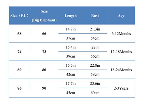 お買い上げになる前に必ず寸法表をしっかりお読みになってください。寸法表は平置き寸法ですので、生地の伸縮性により1-3CMの誤差が生じますが、これは品質問題ではありません。赤ちゃんの体型と成長状況によってフィット感が異なりますので、あらかじめご了承ください。