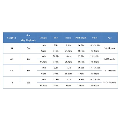 お買い上げになる前に必ず寸法表をしっかりお読みになってください。寸法表は平置き寸法ですので、生地の伸縮性により1-3CMの誤差が生じますが、これは品質問題ではありません。赤ちゃんの体型と成長状況によってフィット感が異なりますので、あらかじめご了承ください。