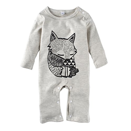 (ビッグエレファント) Big Elephant 1点長袖カバーオールフレンチテリー綿コットン100%男の子キツネ 3-18ヶ月 H12 (6-12ヶ月)
