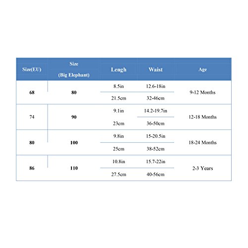 お買い上げになる前に必ず寸法表をしっかりお読みになってください。寸法表は平置き寸法ですので、生地の伸縮性により1-3CMの誤差が生じますが、これは品質問題ではありません。赤ちゃんの体型と成長状況によってフィット感が異なりますので、あらかじめご了承ください。