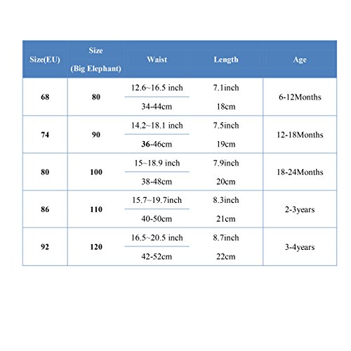 お買い上げになる前に必ず寸法表をしっかりお読みになってください。寸法表は平置き寸法ですので、生地の伸縮性により1-8CMの誤差が生じますが、これは品質問題ではありません。赤ちゃんの体型と成長状況によってフィット感が異なりますので、あらかじめご了承ください。